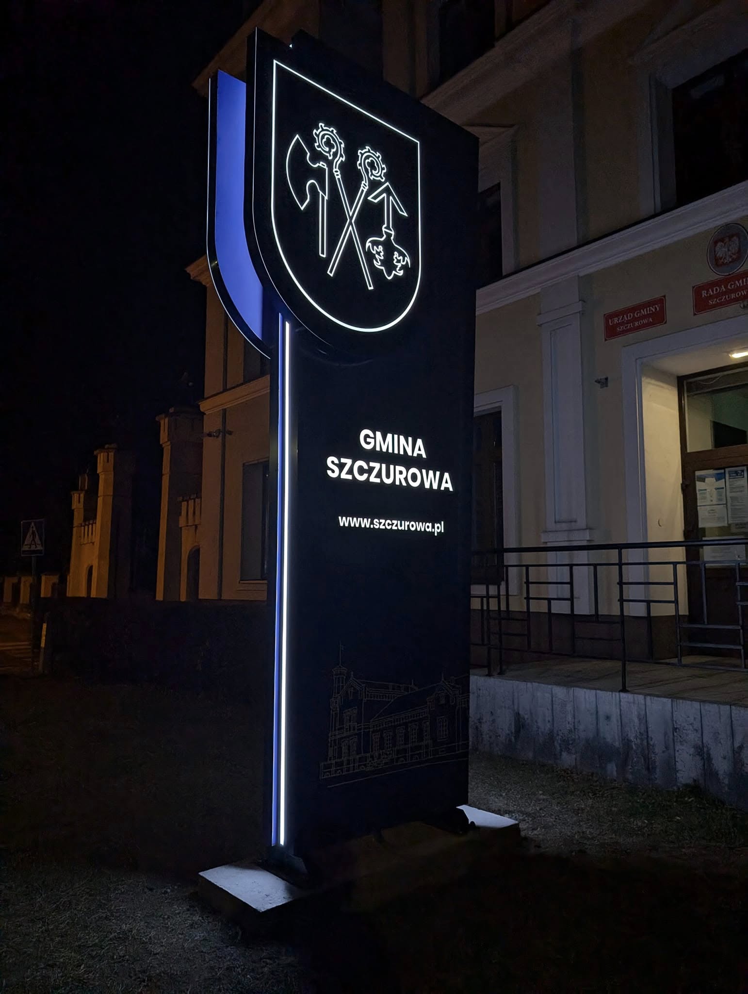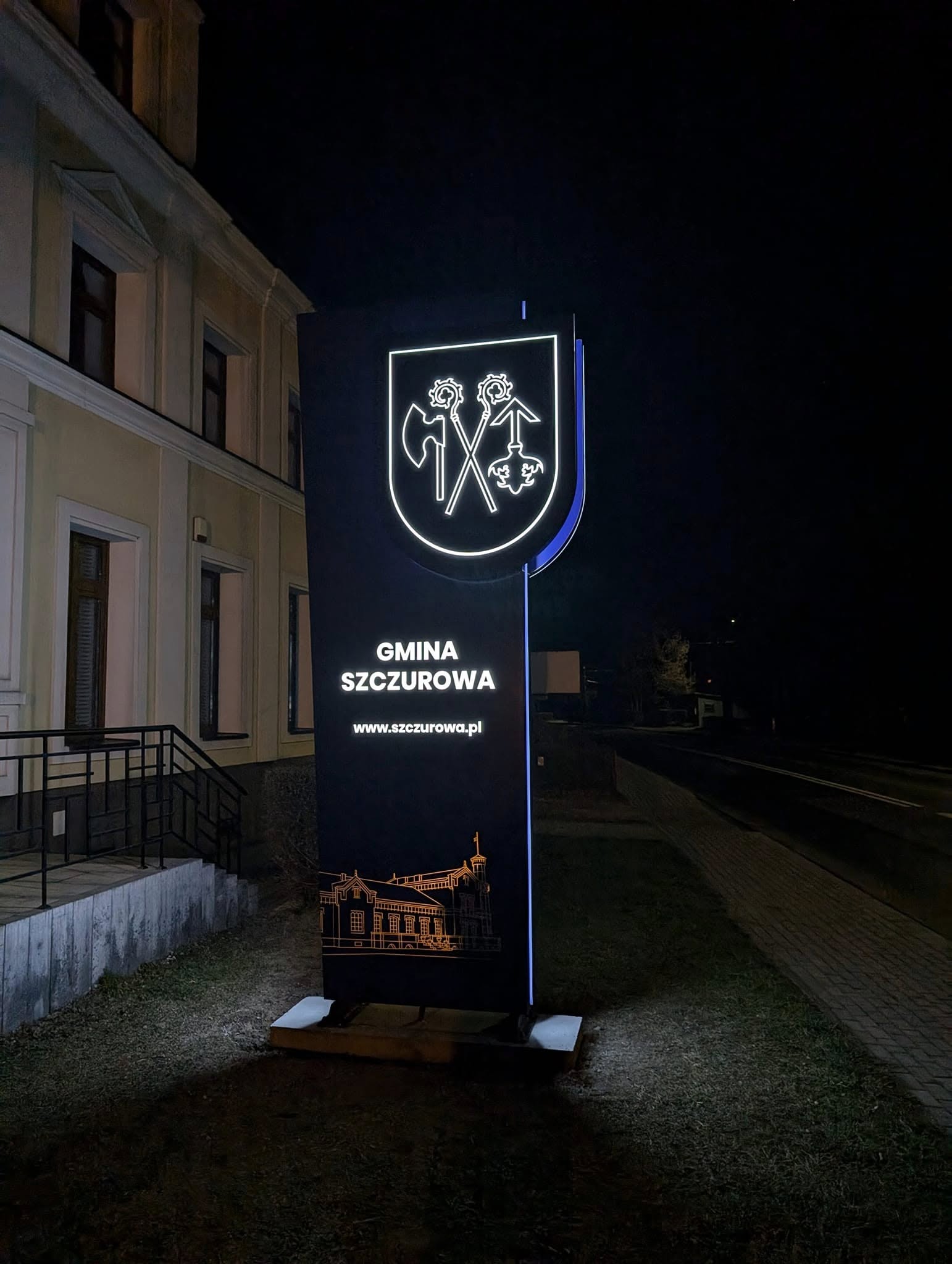 Wykonanie i montaż pylonu z podświetleniem LED dla Gmina Szczurowa